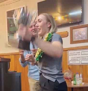 Zoe Clark waving the Bryan Watt Cup just after she was presented it. Photo: Supplied.