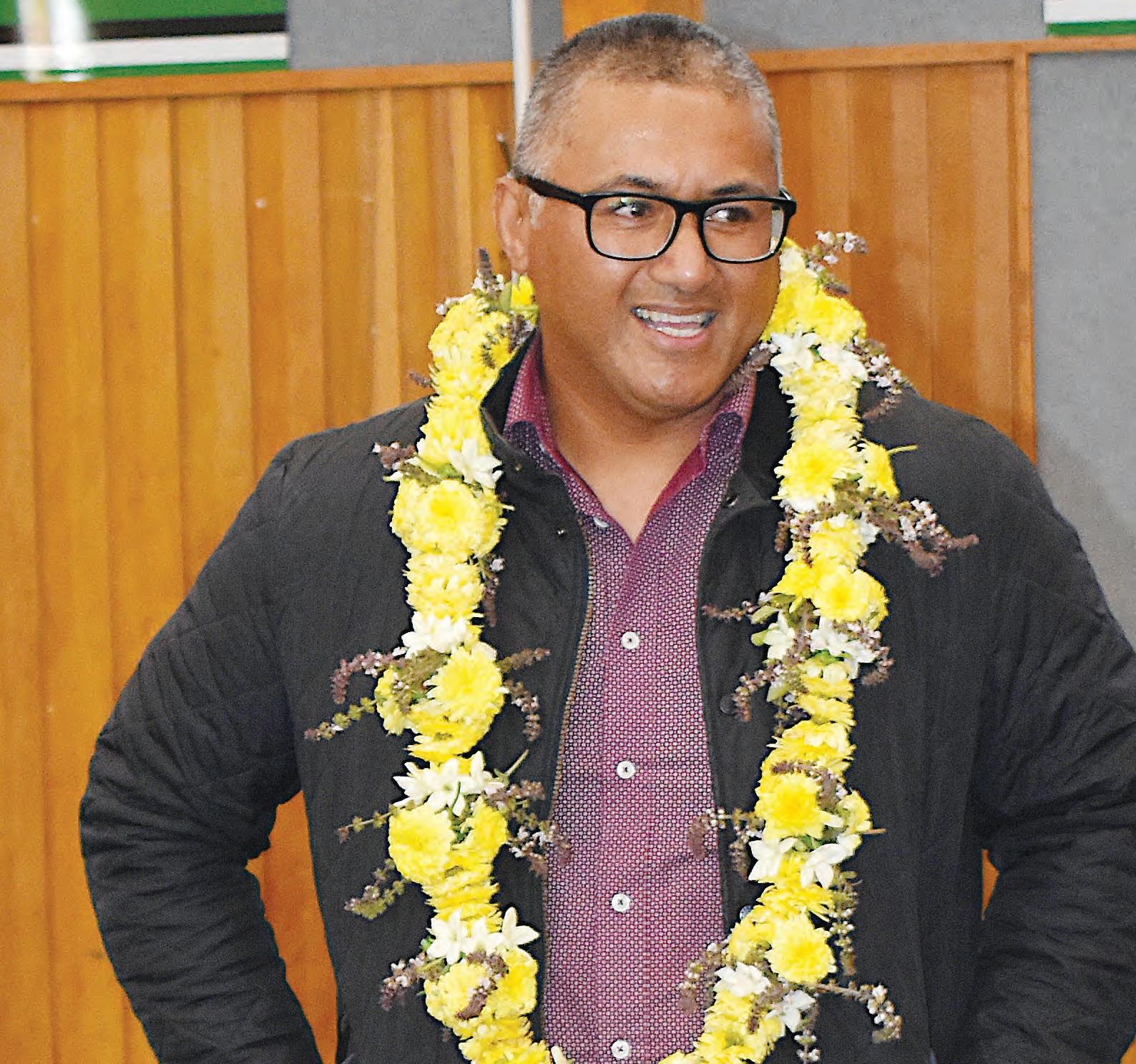 Vatau Sagaga wearing a lei he was presented, just after he was told that he had won the Home Ground Hero award. Photo: Frank Neill.