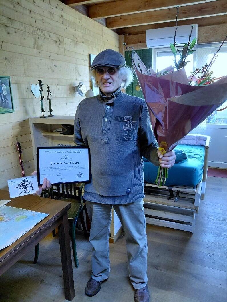 Deze eer, lid van verdienste, is in 2026 weggelegd voor Frans Willems. Hij is gehuldigd met een schildje, oorkonde en een mooie bos bloemen.