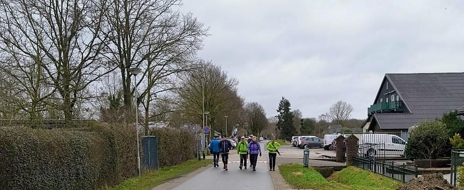 Maar de helden -12 personen - trokken zich daar niets van aan. Lucht kleurde zo grijs dat zelfs de duiven er somber van keken. Met 11 à 12 graden (heerlijk soft) en een zuidwestenwind kracht 4 voelde het aangenaam (fris), maar precies goed om stevig door te stappen. Perfect wandelweer dus. Regen hing wel voortdurend boven ons in de lucht, soms zacht, soms wat nadrukkelijker aanwezig, het soort weer dat je dwingt om in het moment te blijven bewegen.
