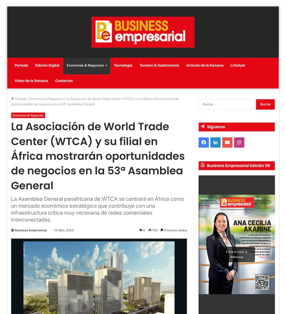 Revista Digital de Economía & Negocios 57.1K Unique Visits Provided by April 14, 2023 • ONLINE La Asociación de World Trade Center (WTCA) y su filial en África mostrarán… businessempresarial.com.pe/la-asociacio … Estimated Views 8.08K Estimated views calculated based on audience size and socia 99