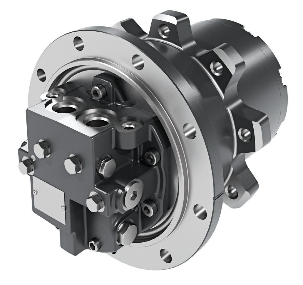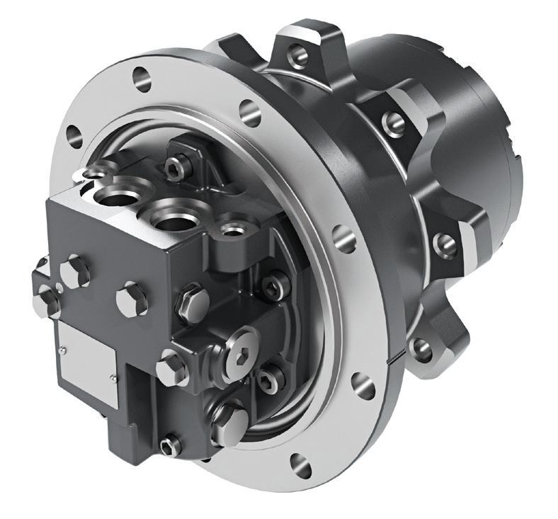 BMV Integrated Drive Motor is a two-speed axial piston motor with integrated planetary reduction gearbox. Previously offered only in select markets, it is designed for dual-path tracked machinery such as compact track loaders. It comes in two frame sizes and four displacements: 28, 32, 41, and 51 cc. It offers imperial and metric port configurations, with optional features such as a loop flushing valve and a PLUS+1 compliant speed sensor. Its compact, lightweight package supports installation, removal and gear oil changes.