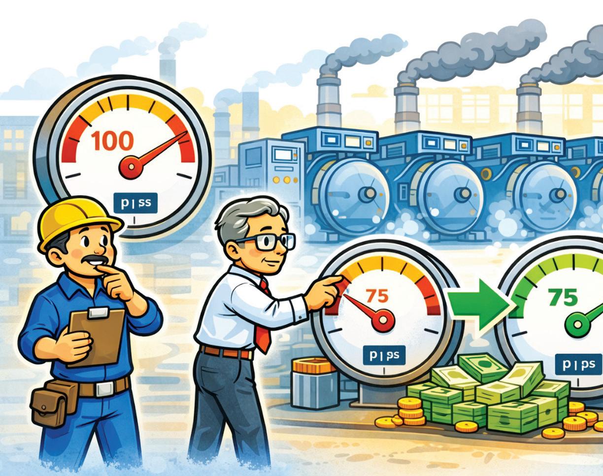 Every leak fixed reduces the constant load on the compressor, improves system stability, and creates the headroom needed to safely lower machine and system pressure.