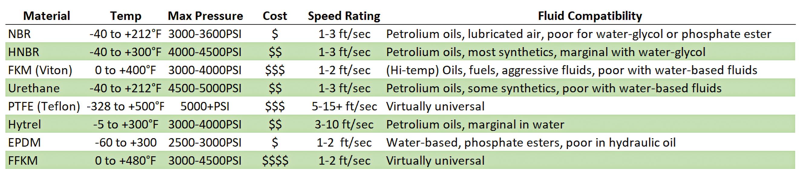 ature resistance. However, be careful with extreme pressure; Viton requires extremely precise pocket dimensions to prevent extrusion, as it is quite soft. If your fluids are especially aggressive, such as polyol esters, also consider Viton’s brother, FFKM, which is essentially chemically bulletproof.