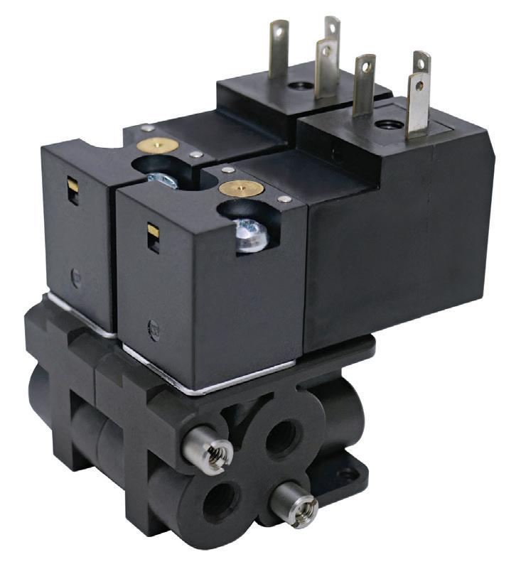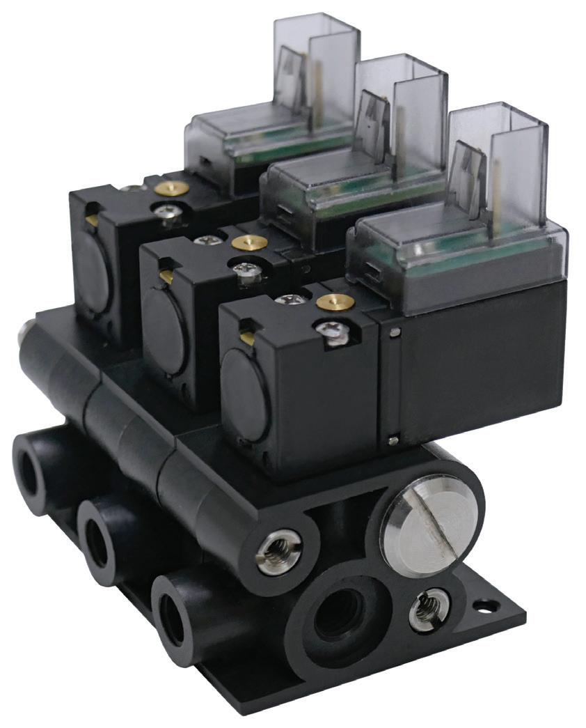 Series 1090 and series 1590 stackable solenoid valve platforms for compressed-air control in compact electro-pneumatic systems are intended for OEMs and system integrators where space constraints are a factor. The Series 1090 is a 10 mm-wide stackable valve rated for low-power switching and up to 50 million cycles in clean, dry air applications. It is aimed at analytical instrumentation, medical devices and automation systems with limited panel space. The Series 1590 is a 15-mm-wide, stackable platform with orifice options up to 1.5 mm and pressure capability up to 145 psi. It has an IP65 rating for environmental protection in humid or dirty conditions.