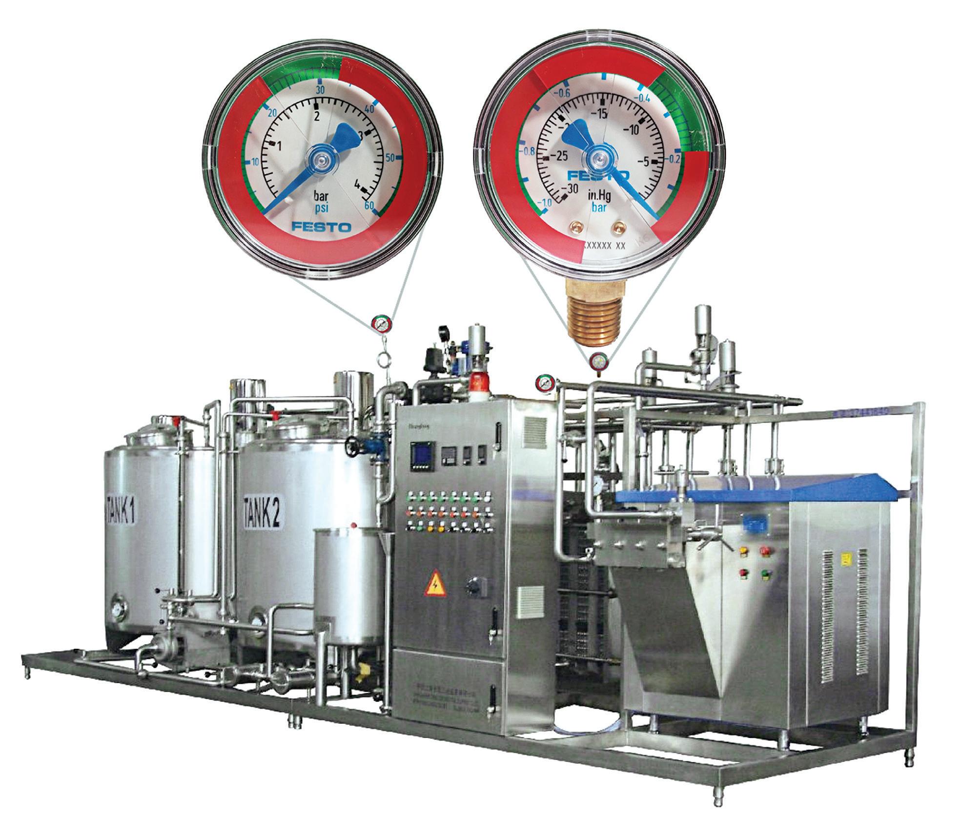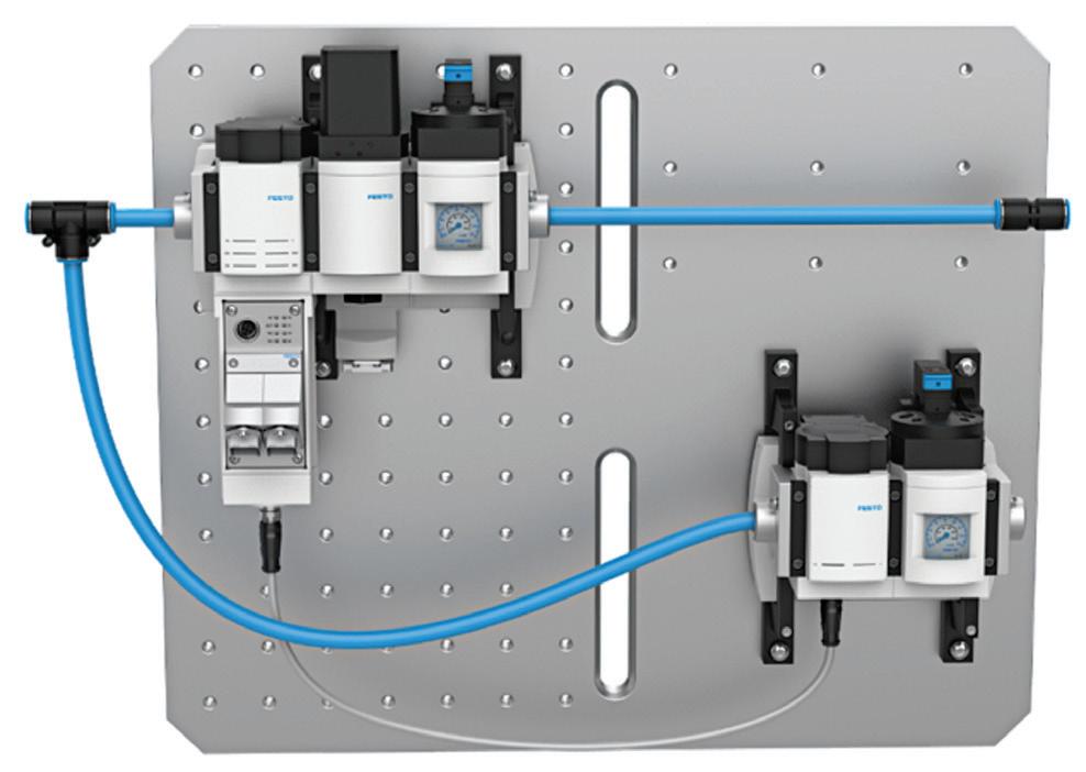 Low-cost red-green pressure indicators mounted directly on regulators or manifolds support this discipline. Green indicates the regulator is at its validated setpoint; red sig nals that the pressure has been increased above the approved value. Because the indicator is on the machine, operators and maintenance personnel recognize the devi ation immediately, and corrective action can be taken immediately. The system will stay optimized, energy use remains at its lowest optimum level, and compressed air becomes a manageable and predictable operating cost. FPW Festo festo.com