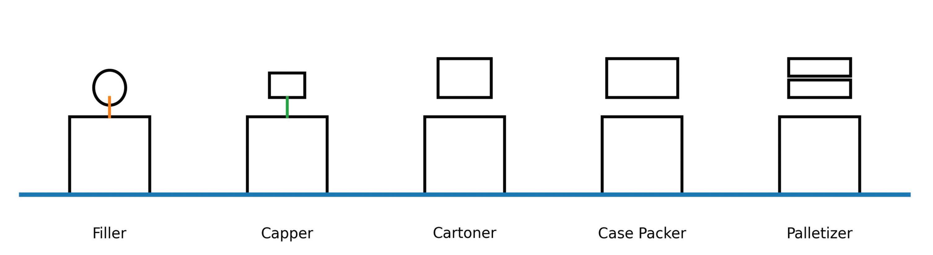 To illustrate these practices, visualize a five-machine production line consisting of a filler, capper, cartoner, case packer, and palletizer. Each machine in this illustration line uses compressed air differently, and together they represent the kinds of demand patterns found in most plants. The five practices will be used to lower plantwide air usage without major expense or adding new capital equipment.