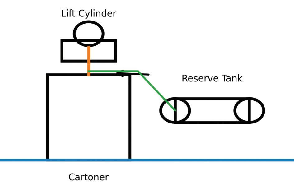 On the cartoner, for example, a reserve tank placed close to the large-bore lift cylinder supplies the burst of air needed for that motion while providing a buffer for the machine pressure. This low-cost step often stabilizes the machine without further changes.