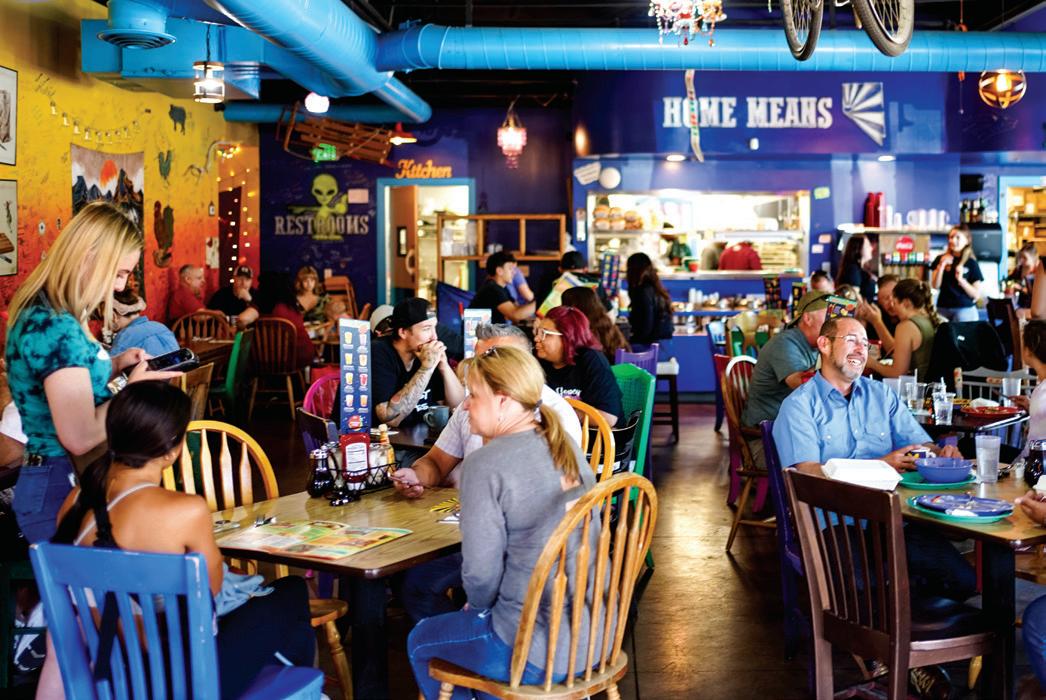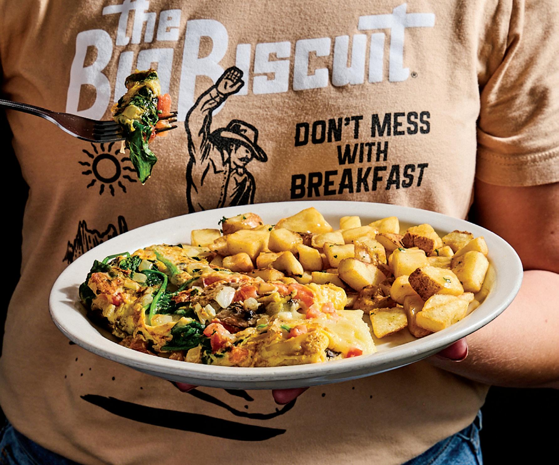 Squeeze In is an emphatically alcoholforward brand, with Young explaining that, “You can’t drink all day unless you start in the morning.” Double-digit alcohol sales prove the brand has established itself as a place where guests can relax with a few rounds of mimosas, bloody marys, or specialty cocktails—though perhaps best known for its 12-ounce
