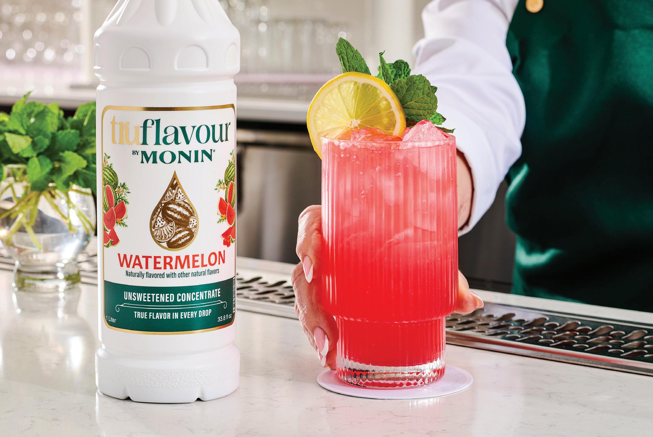 “Monin syrups deliver sweetness and flavor together,” Godfrey says. “But TruFlavour allows operators to add just flavor without any sweetness. That opens new creative possibilities for lowsugar beverages, mindful mocktails, savory applications, and more precise flavor layering within established beverage programs and culinary menus.”