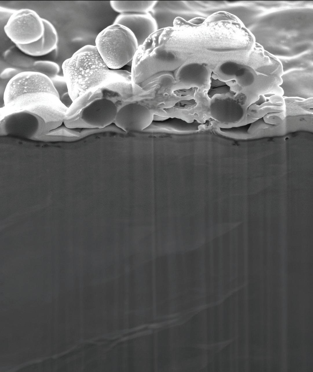 The resulting layer of positively charged, quaternary ammonium molecules on an implant’s surface measures only one-millionth of an inch and immobilizes, perforates and destablizes microbes.