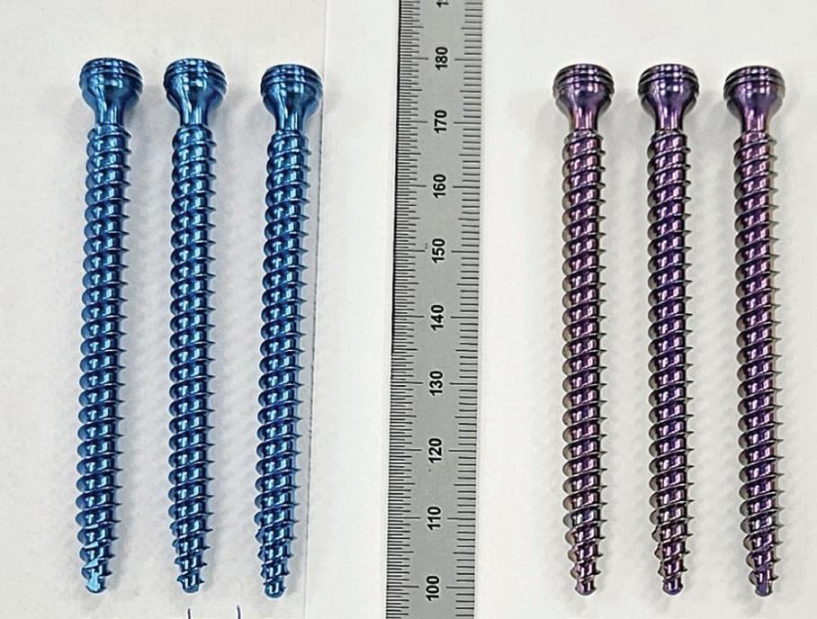 Pedicle screws before (left) and after (right) being coated with Orthobond’s Ostaguard antimicrobial technology
