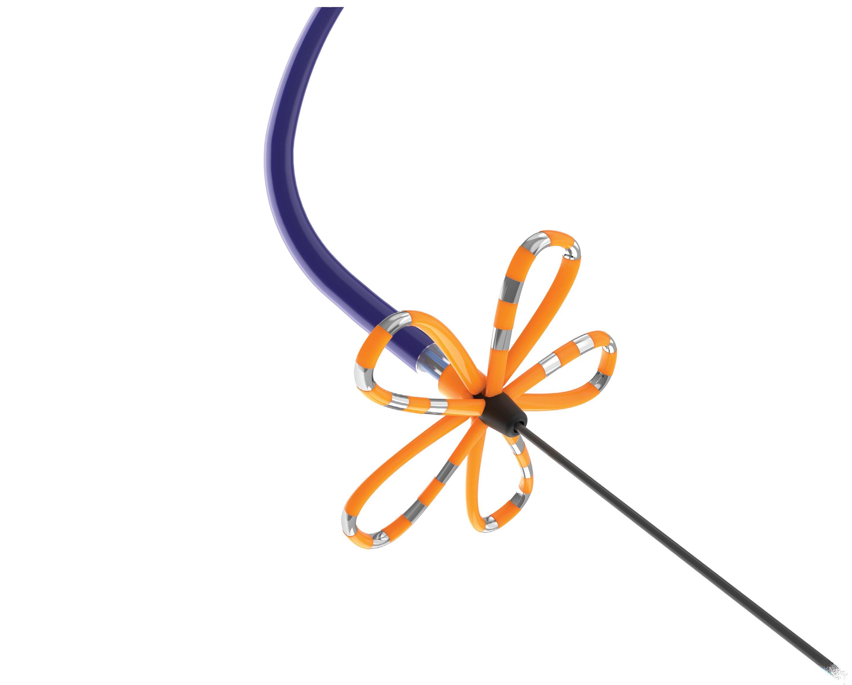 The balloon also helps stabilize the basket inside the pulmonary vein, where the device’s round shape allows a physician to place the catheter at the ablation target site, apply energy, and rotate the device slightly to achieve a spline offset for a second energy application.