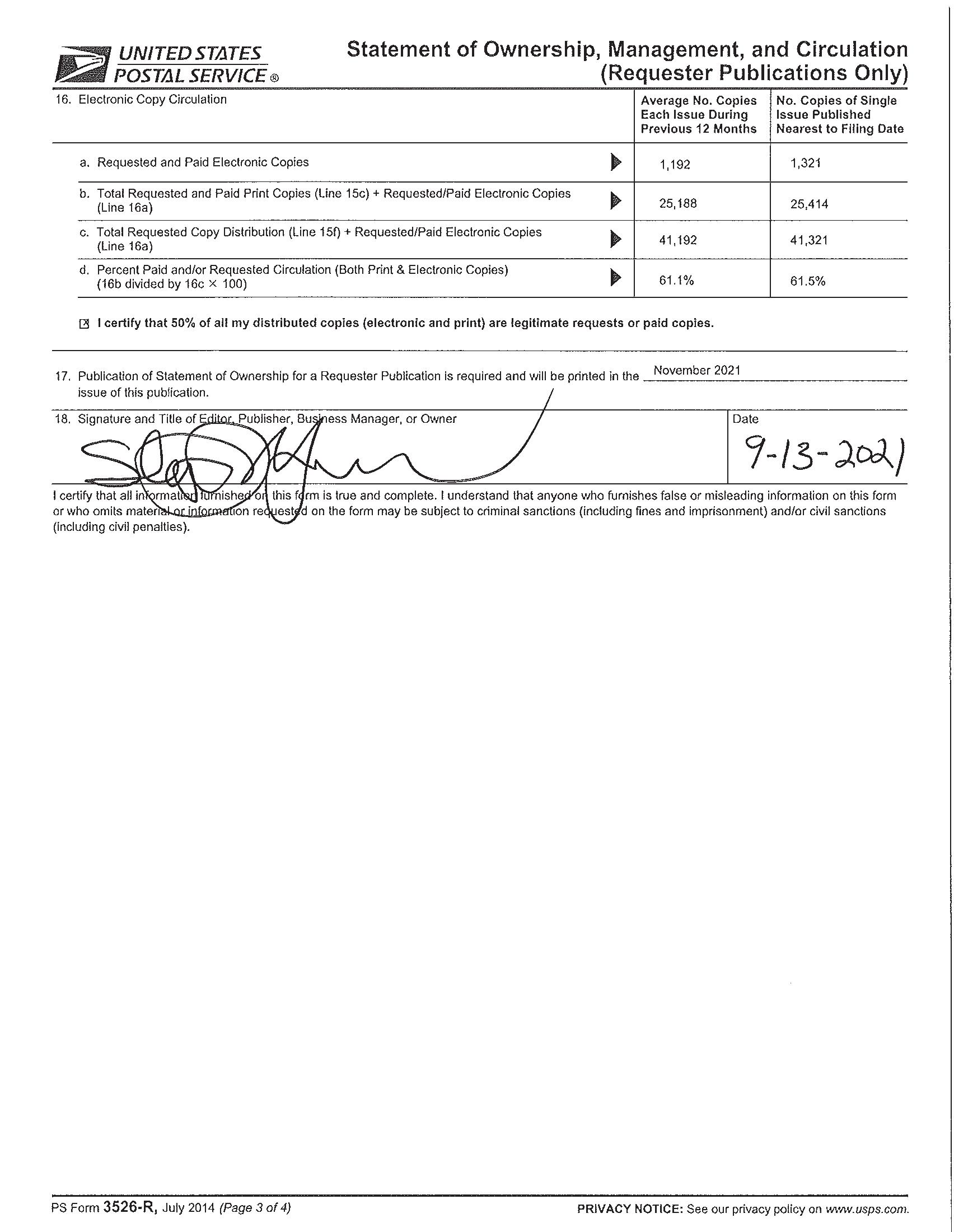 You may ask yourself why PMQ interrupts its magazine layout once a year with this unsightly, barely readable, and shrunken circulation report. No, it’s not a mistake. The U.S. Postal Service requires us to publish the report once a year to maintain our special mailing status as a magazine. When you mail a magazine to more than 40,000 qualified pizzeria owners and operators each month, the postage adds up. Thank you for your understanding. Meanwhile, if you’d like to know more about how to use PMQ as an advertising tool, please check out our 2022 media kit at PMQ.com/mediakit.