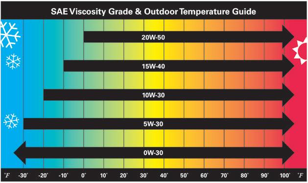 and the required viscosity for high-temperature operation. These oils are engineered to have a high viscosity index, which allows these oils to have a wider temperature operating window. Often, multigrade oils are designated with the letter W in the SAE viscosity grade. The lower the number before the W, which stands for winter, the lower the cold temperature properties of the lubricant. Engine oils with viscosities such as SAE 5W-20, SAE 0W-20 and SAE 10W-30 are multigrade oils.