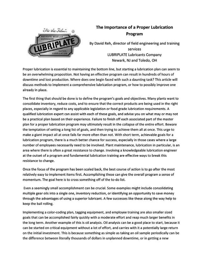 38 | Lubricant viscosity is critical to efficient and reliable manufacturing