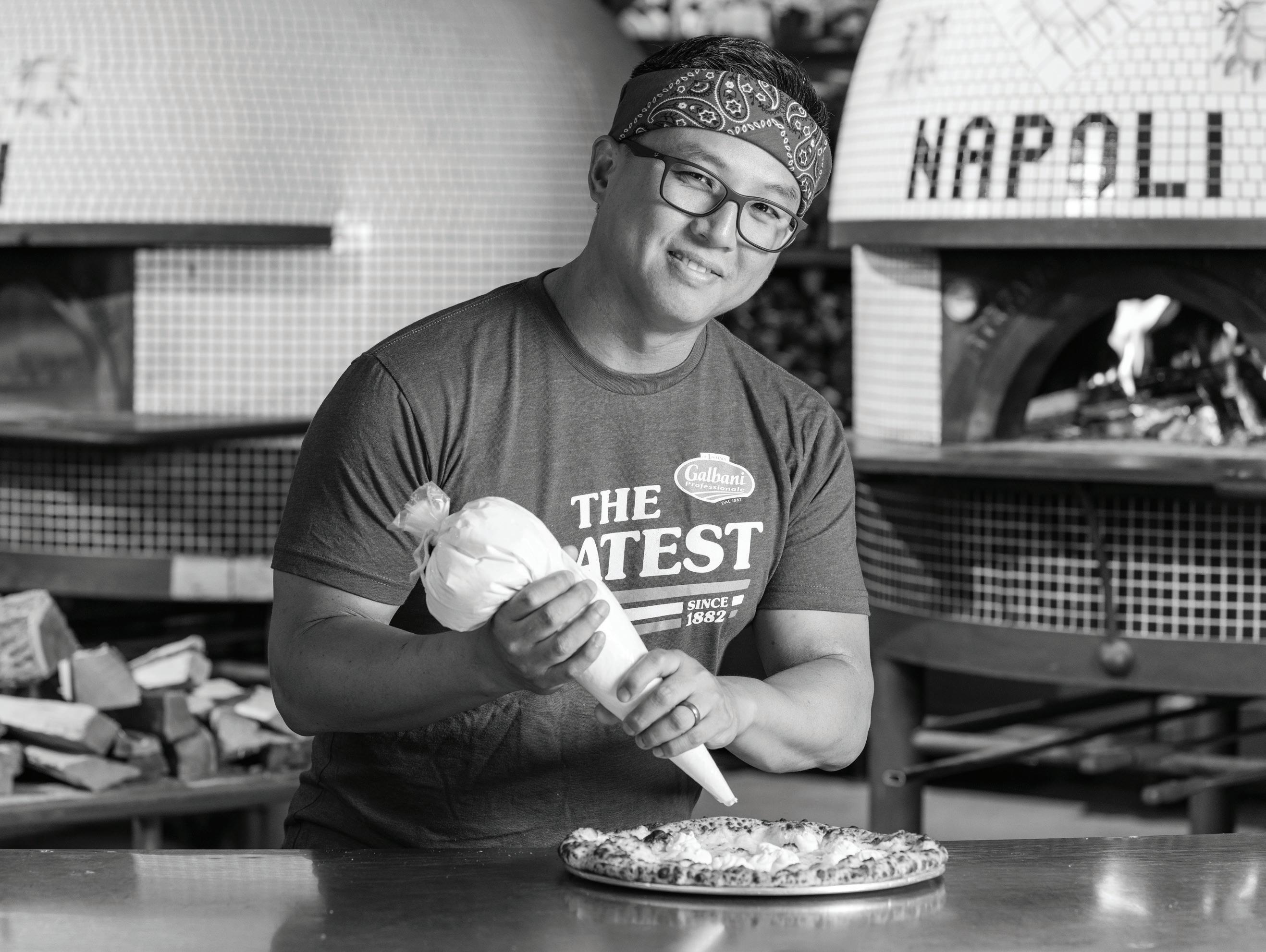 “One of my signature pies is a New York-style cheese pizza topped with shrimp and fresh garlic, then a fresh cilantro garnish….Every time I serve it, someone loses their mind—in the best way possible.”