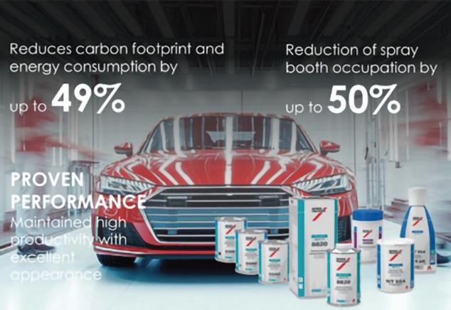 Spies Hecker’s Permasolid Speed-TEC is a collision repair paint system, reducing energy consumption by up to 49% and cutting cycle times by 50% compared to conventional systems. It is one of the fastest repair systems in the refinish market, delivering performance that meets the same rigorous standards of aesthetics, chemical durability and weathering resistance required by automakers for original production finishes. The technology features fast drying at low temperatures, 10–15 minutes at 40–45°C or 30–55 minutes at 20°C; reduced cycle times and energy consumption; and does not need a basecoat activation. The technology is backed by Daimler, BMW, and VW. The system offers excellent scratch, chemical, and weather resistance, superior adhesion, and outstanding corrosion protection. The system is suitable for air-dry or low-bake, on metal and plastics, in sanding or wet-on-wet modes—all using a single common hardener for both clearcoat and surfacer.