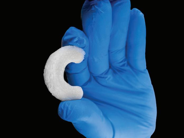 RejuvaKnee is a minimally invasive collagenbased meniscal implant indicated for use in the reinforcement and repair of soft tissue injuries of the meniscus. It is a purified intact bovine meniscus implant that is biocompatible and bioresorbable. RejuvaKnee acts as a scaffold and allows for a more complete recovery by facilitating the regeneration of the native medial meniscal tissue instead of cutting or replacing it. By harnessing regenerative medicine, this offers a solution that can advance what is possible with healing knee injuries. This approach prioritizes patient well-being and has the potential to repair meniscal injuries, helping to slow or prevent future joint degeneration. By reducing meniscal deterioration, RejuvaKnee may also decrease the need for follow-up surgeries and delay or even eliminate the necessity for total knee replacements. RejuvaKnee is intended for use in surgical procedures for the reinforcement and repair of soft tissue injuries of the medial meniscus. It reinforces soft tissue and provides a resorbable scaffold that is replaced by the patient’s own soft tissue. Many complex meniscus tears are currently treated with a partial resection for symptomatic relief, but with the significant risk of increased contact pressures and more rapid progression of arthritis, RejuvaKnee provides a scaffold for the patient to regenerate their own meniscal tissue for these defects. Favorable incorporation of the scaffold can not only offer symptomatic relief but also has the potential to reduce osteoarthritis and quality of life over time for patients.