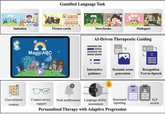 MagicABC is a clinically grounded SLP-Agent, overcoming cross-context language barriers by embedding virtual speech therapists into interactive games. It replaces rigid, one-way methods with dynamic, two-way communication, offering real-time error correction, correcting language hallucinations, and delivering personalized, continuous support. The key advantage of MagicABC lies in its core SLP-Agent (Speech-Language Pathologist Agent), which enables bidirectional, guided communication within interactive games. By emulating the speaking patterns and cueing techniques of clinical speechlanguage pathologists, the SLP-Agent replaces rigid, rule-based responses, such as “incorrect” or “try again,” with therapeutic guidance that adapts in real time to the user’s specific input. When a user gives an incorrect or incomplete response, the system generates clinically meaningful cues that help the individual recognize errors and revise their reply, thereby improving expressive language and comprehension. That is to say, MagicABC redefines the traditional, one-way assistive paradigm of AAC (Augmentative and Alternative Communication). It addresses the limitations of AI interaction models caused by language hallucinations and deeply integrates the SLP-Agent into the logic of clinical language therapy. Acting as a dynamic communication partner to deliver therapeutic guidance at the level of every utterance within gameplay, offering individualized feedback that closely mirrors the real-time interaction of human clinicians.