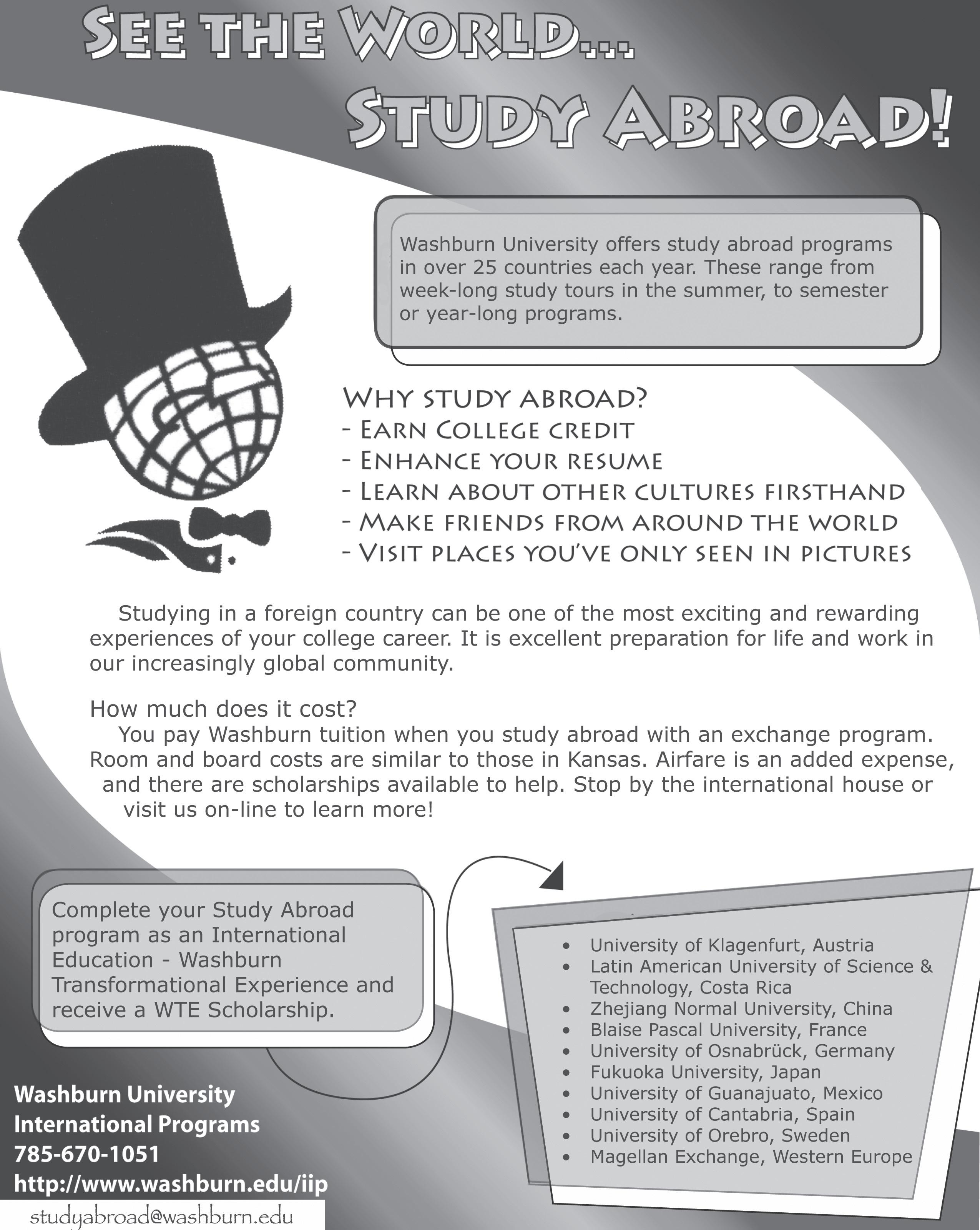 The Washburn Review is published every Wednesday throughout the academic year, excluding holidays and some other dates. Copies are free for students, faculty and staff, and can be found at numerous locations around the campus of Washburn University. Subscriptions to the Washburn Review are available at the following rates: 15 issues for $40 or 26 issues for $55. For more information, please visit our website at www. washburnreview.org or call (785) 670-2506.