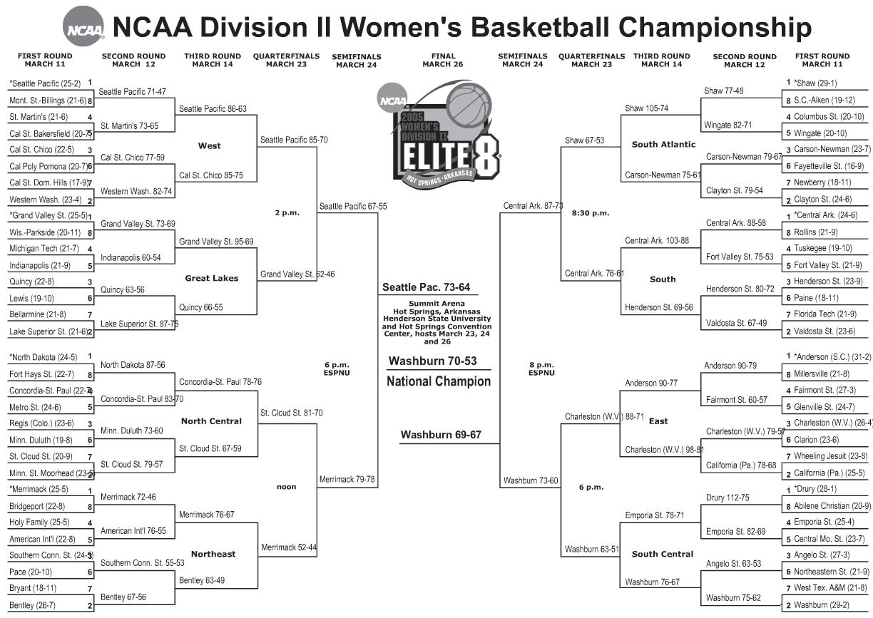 The recent success of the Washburn basketball teams combined with an out standing facility in Lee Arena has led the NCAA to select Washburn as a host site for postseason competition. Washburn was host to the men’s South Central regional in 1992, 1994, 1997 and 2001. In addition to a first-round regional game in 1995. The Ichabods are 5-4 in NCAA postseason play in Lee Arena.