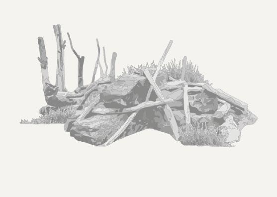 Artificially (low intervention) or naturally (animal self-design) discarded branches and stumps are combined into animal nests to prevent animals from gnawing on the bark to build nests. Leaving landscape debris (dead leaves, rock piles, bushes) in place creates a natural shelter for wildlife to avoid predators and navigate the park.