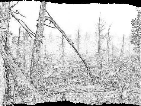 The trees will randomly reduced by two method: artificial felling and simulated wildfires. And the felled wood will not be hauled away but will remain on site as organic mulch.