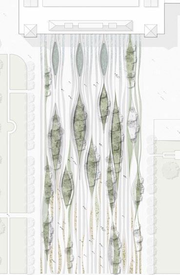 The rainwater collected in this place will evolve from the upper layer of the cascade wetland to the central lake.