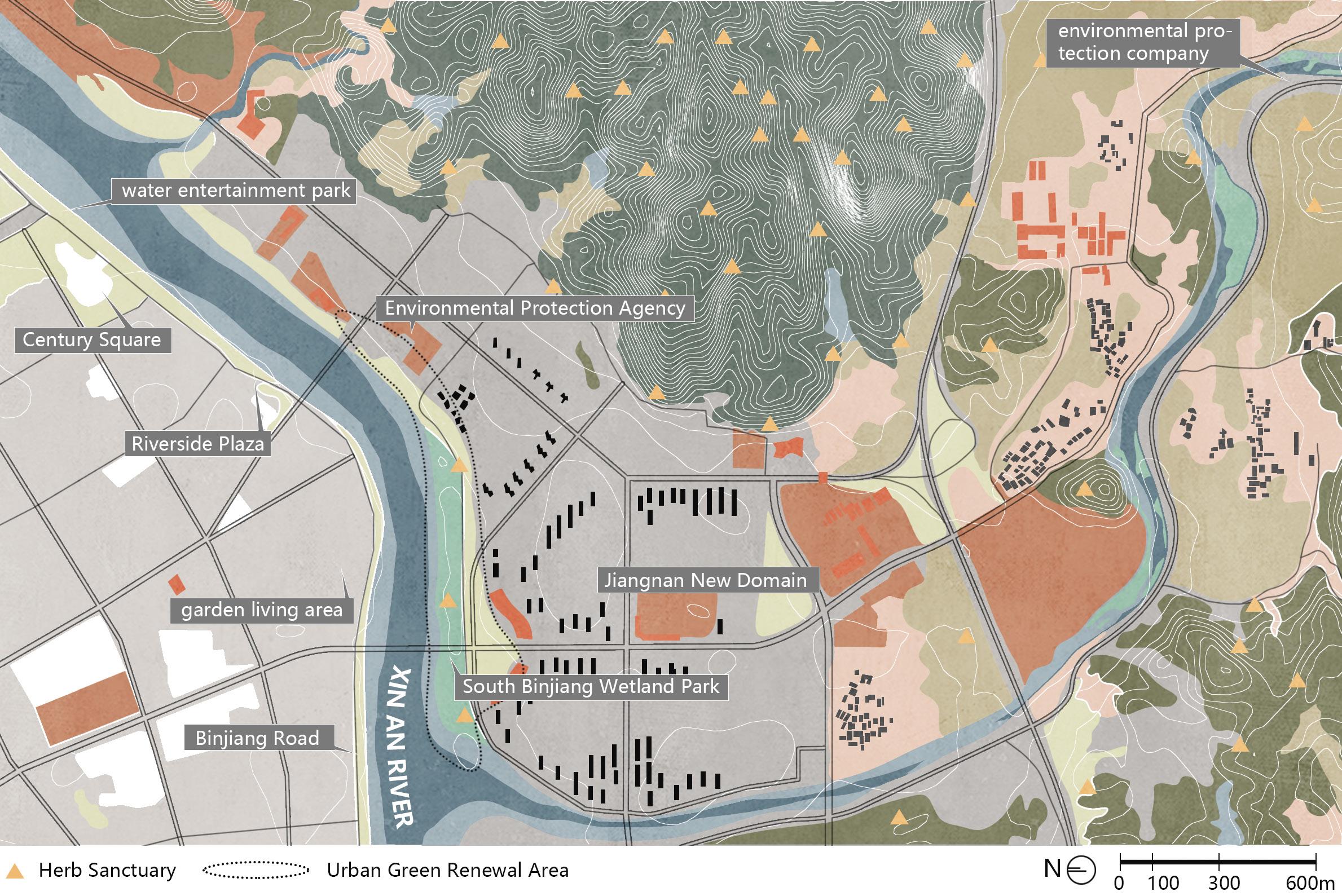This proposal, situated on an 8-hectare site in the Xin'an River's south bank riverside park, addresses environmental issues through urban dual improvement. The strategy involves water ecological restoration and urban cultural supplementation. By delving into Xin'an medicine culture and traditional Chinese herbal roots, the proposal aims to enhance the narrative landscape of the Xin'an River Medicinal Plant Garden. The design weaves together past and present, using the riverside space as a storytelling medium, fostering humanistic spirit, and allowing visitors to experience the charm of traditional culture.