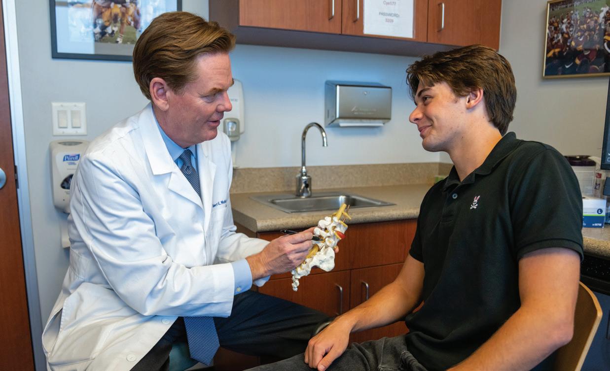 Shadowing days under his guidance are immersive for his interns, if understated. “They’re essentially a fly on the wall,” he explains. “Being a spine surgeon is a unique job, because I need to make contact with the other person, build trust, understand their pain and suffering, do a complete history and physical exam, review studies, and make a full decision at that time of the visit and tell them what I recommend they do for their life. I think the kids appreciate how much knowledge, training and experience it requires, and how much energy you need every day to be able to perform the job of being a physician.”