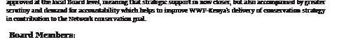 As a Board, we have remained focused on ensuring that WWF-Kenya’s strategy, governance, and investments are aligned with this evolving landscape. We have supported the finalisation of the revised Integrated Strategic Plan (2020–2030), approved in June 2024, which sharpens our focus on measurable impact, landscape-level visioning, and adaptive management. We have also overseen key steps to strengthen financial resilience, compliance, and enterprise development, ensuring that conservation is not only sustainable, but also economically empowering.