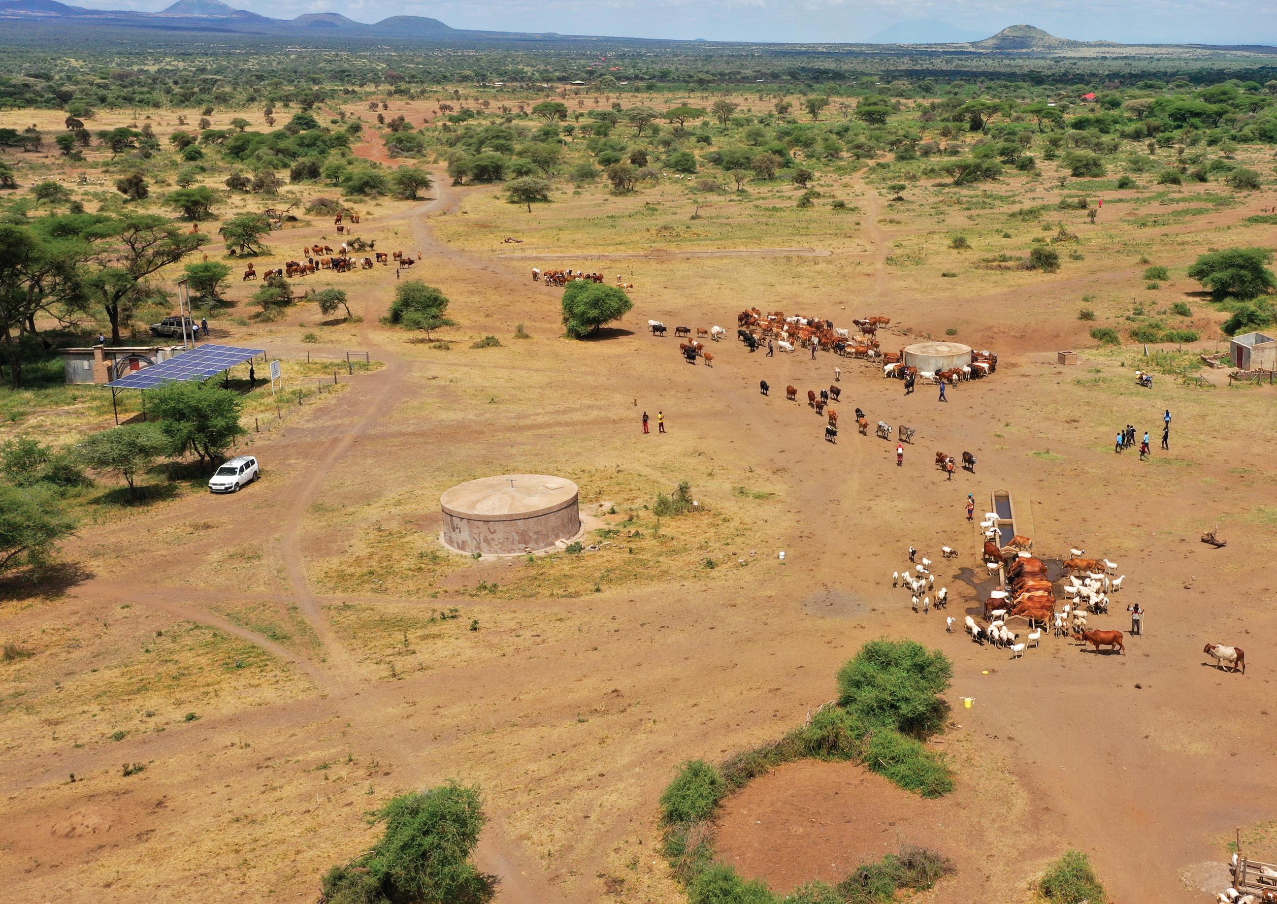 Water for all: people, livestock and wildlife, as solar power springs 40-year-old borehole to life