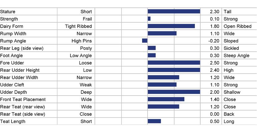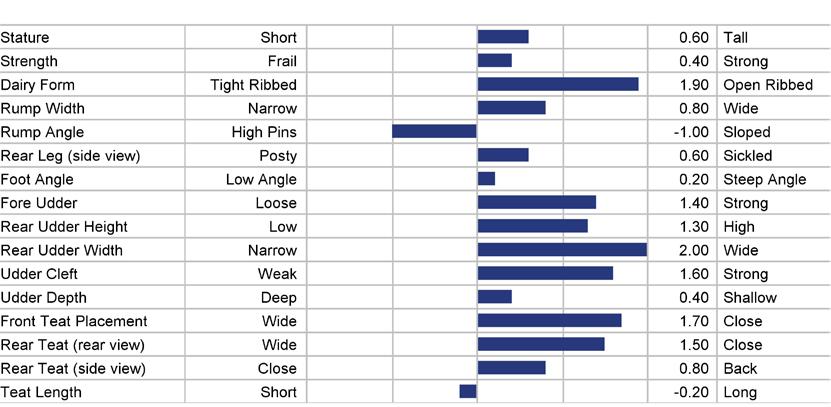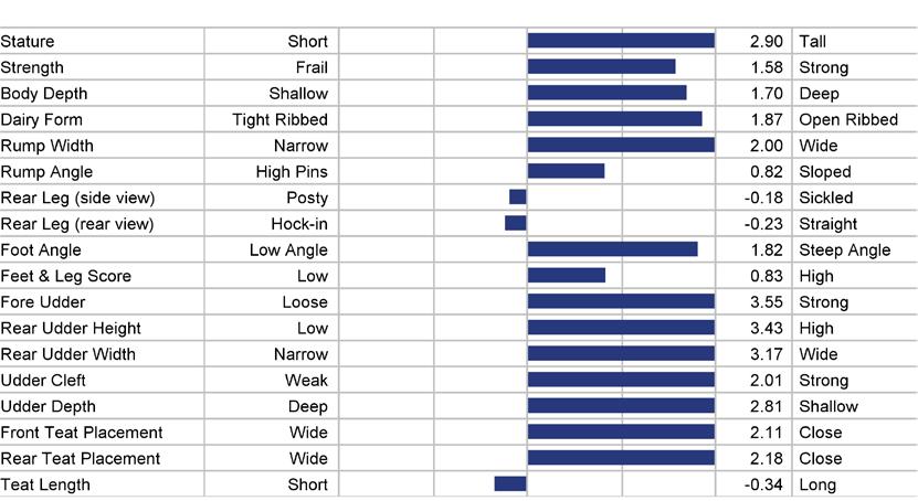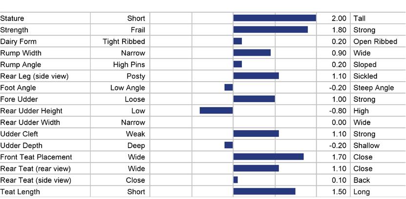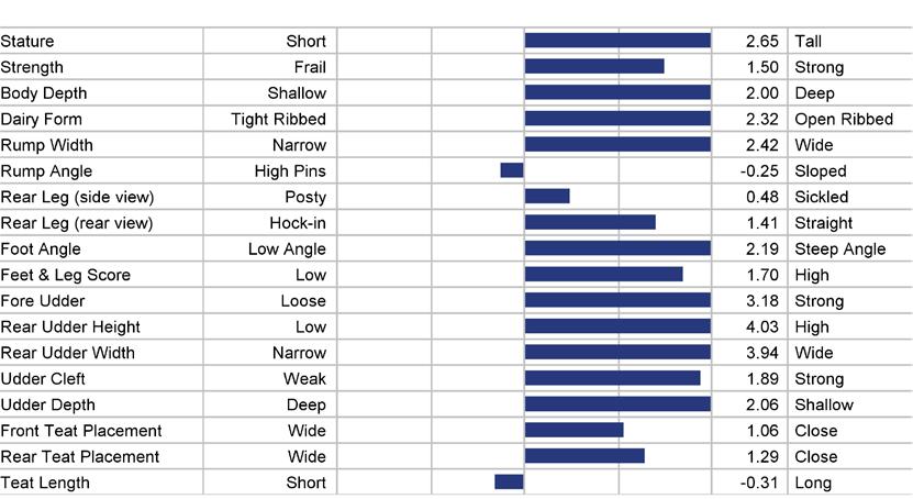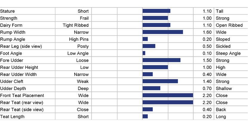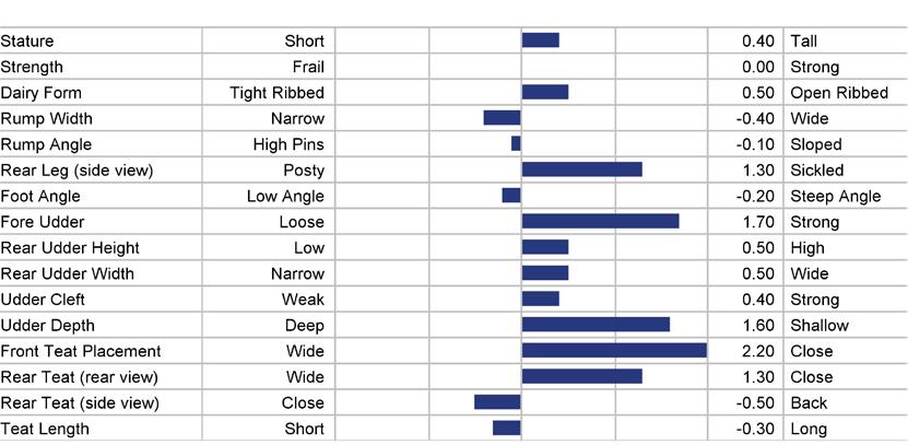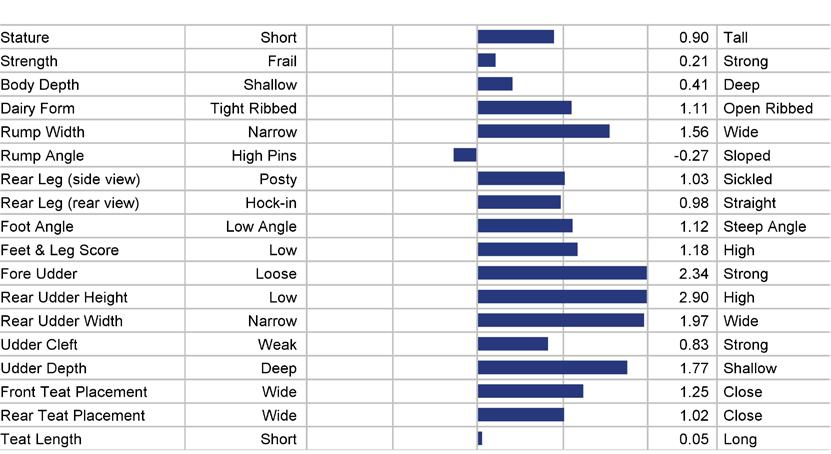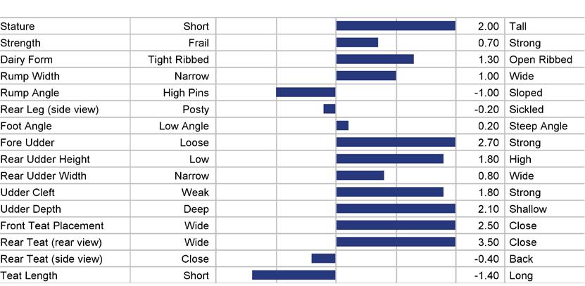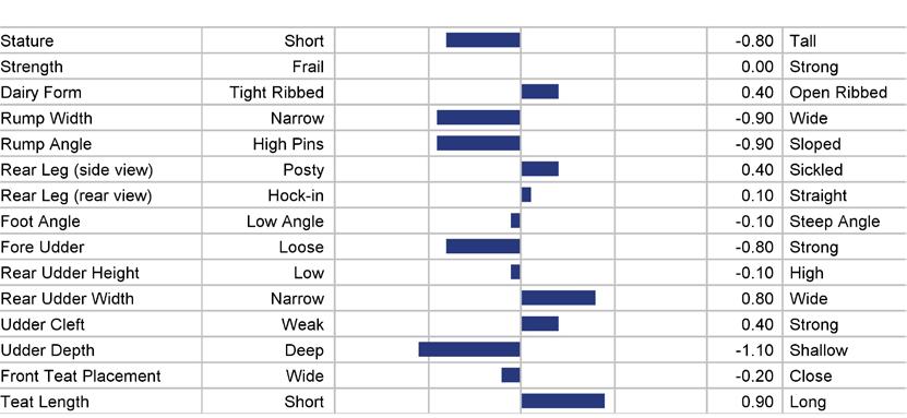 STATURE 68 to 118 medium 93 TEAT LENGTH 81 to 123 medium 102 KG SOLIDS -133 to +103 medium -15 SURVIVAL 84 to 116 medium 100 HHP$™ -719 to +1408 medium +345 STATURE 101 KG SOLIDS 87 TEAT LN 95 SURVIVAL 111 1129 HHP$™