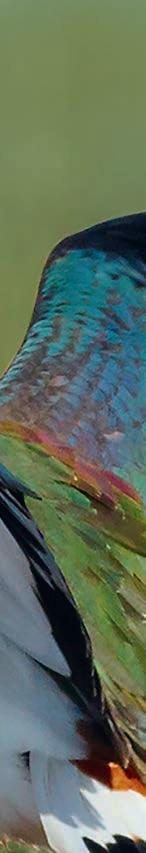 Marvel at the river king Kingfishers can be a glimpsed blue flash or a blur by the water if you’re lucky. But your chances of observing them in more detail are much higher around the nesting banks at many WWT centres this spring and summer. During the breeding season between late March and July, the area around a kingfisher’s nest hole is consistently busy. These birds have five to seven chicks to feed, so a pair could be catching and bringing back around 100 fishy meals every day between them. That’s a lot of coming and going, and they’ll o en announce their presence by calling to each other as they head for the nest with a beakful of food. You might see one parent perching on a nearby branch showing its ice-lolly orange front as it waits for its mate to finish a feeding drop, before it enters the nest itself. Discover the locations of our nesting banks before you visit. See your local WWT centre’s website for details.