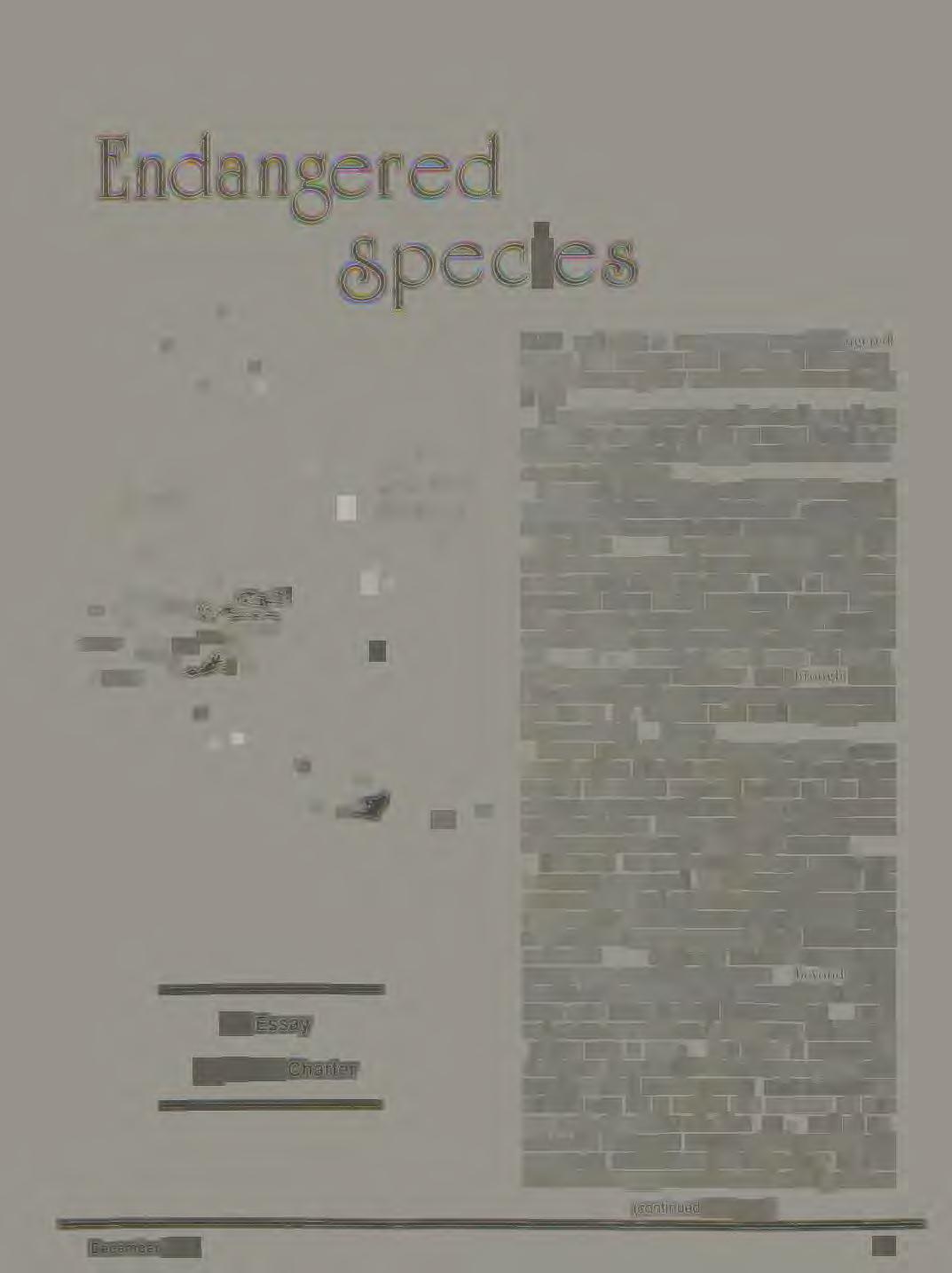\\'HY •rnd what is. our concern over endangered spec_ ics ? The dinosaur and pterodactyl have di appc.Hcd f,om our planet, yet we arc here on our living Earth , \ -,pecie is a g1ouping ,of animal or plants posse s1 ng in common one or more di tinctive cha ran en tic and which reprodu e the e characteri tit in it off pring. pcries which become c tinct throu h tho e natural prnccsse ,,hich make them non - viable, in apablc of sustainmg their own ontinuum, ar not thou ht of as b•·ing endangered for what endangered them? We think of a pecie as being ndanger d when it confronts man - made extinction, when it confront man - made threat of the perman nt ra urc of it life-gi, ing continuum extending unbroken from th pre cnt to deep imo the rccc e of it. hi tor whi h i