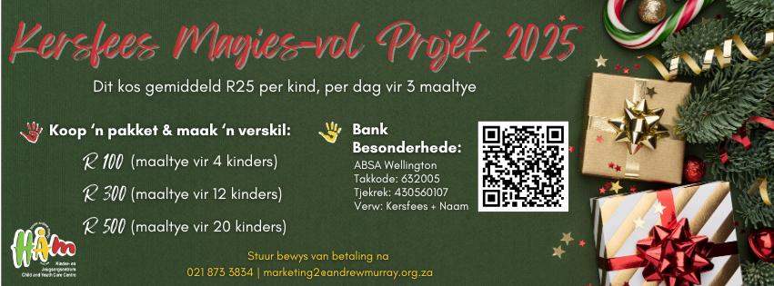 Kersfees Skoenboks Projek was ‘ n groot sukses Op Donderdag, 27 November 2025 het elke kind by HAM ‘ n skoenboks ontvang wat basiese somers behoeftes bevat. Die kinders is ook bederf met lekker Romans Pizza en koeldrank na die tyd.
