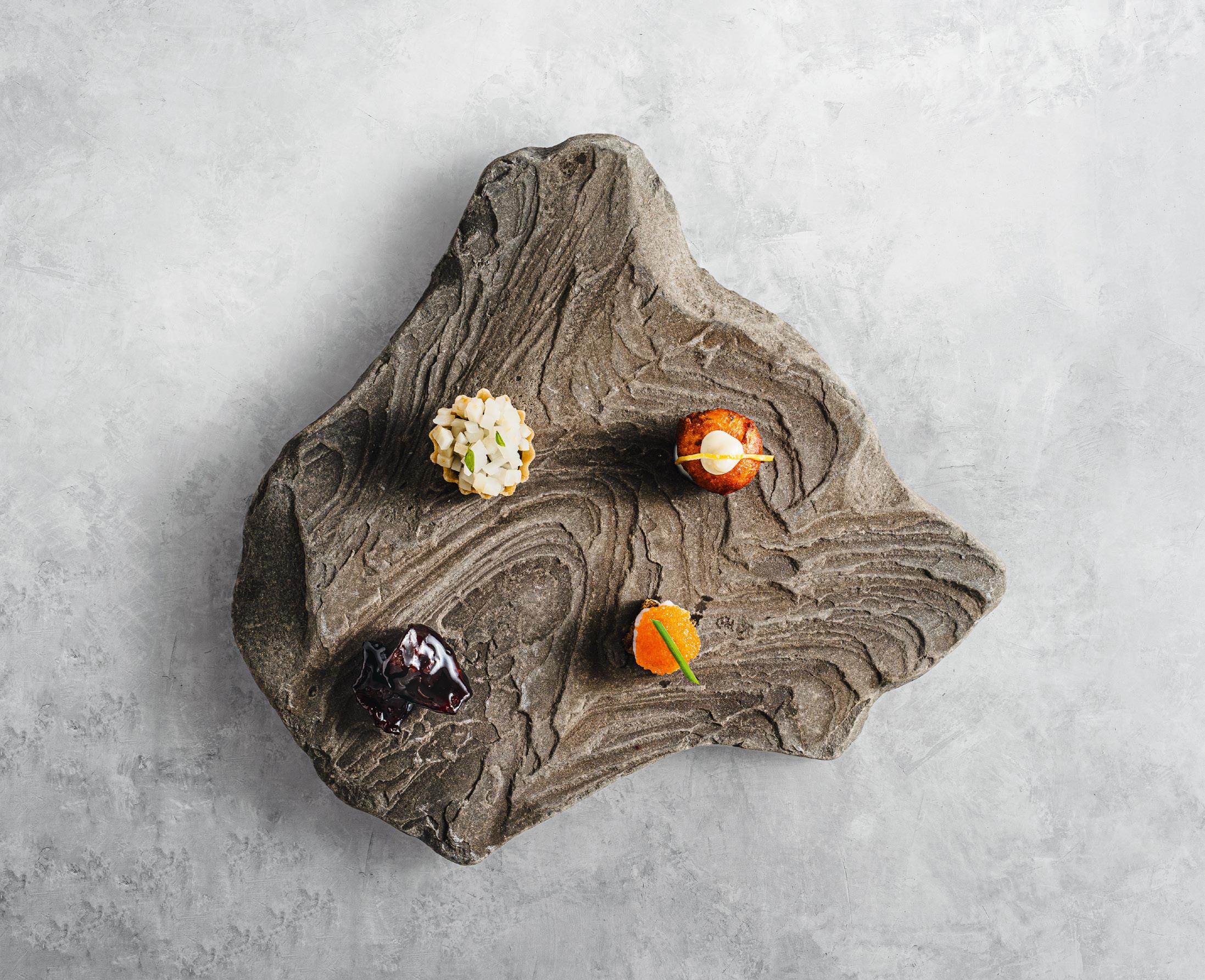 Appetittvekkerne serveres på stein.