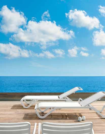Essential and sophisticated, the metal structure of the Ocean sun loungers takes on soft shapes like the waves of the sea. The stackability of each element emphasizes the functionality of the collection.