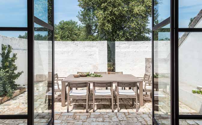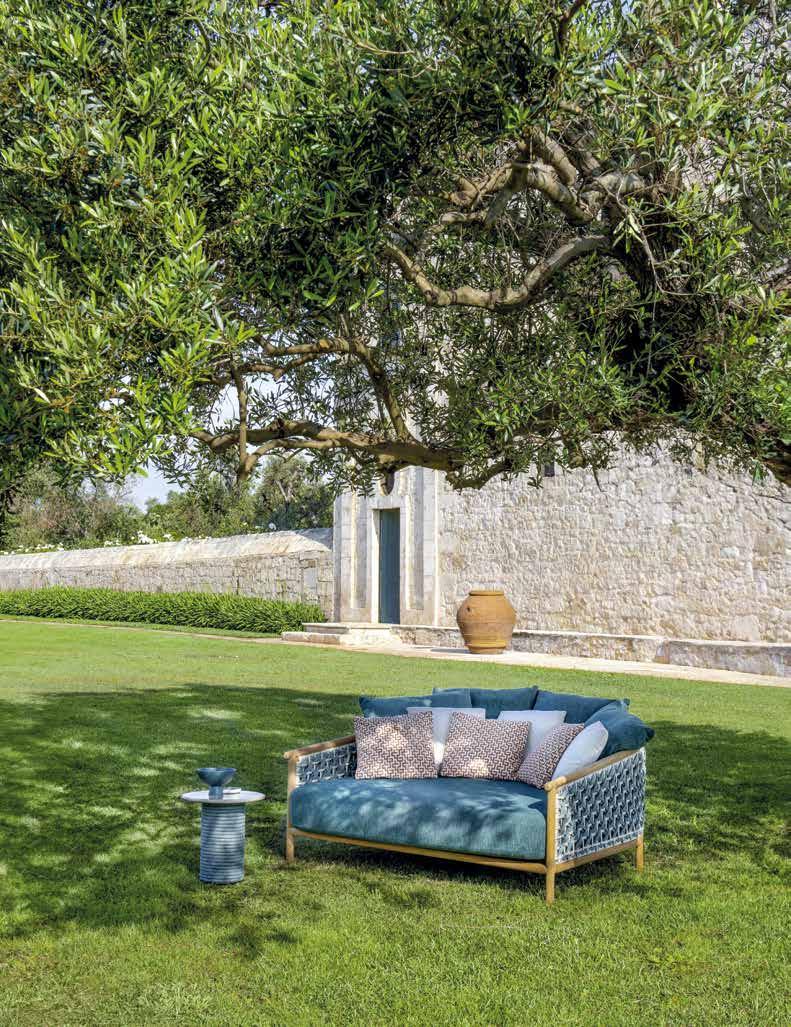 en / A farm under the blue sky of Salento, a volume of rough stone among the vineyards and olive groves, simple and regular like the pace of work in the fields. A palace in the heart of Lecce that reveals a secret garden, where nature becomes wonder, sensuality, mystery. Two worlds that meet on the border between countryside and city, past and present, harmony and contrast. A new stage in Ethimo’s journey through time, space and forms of living.