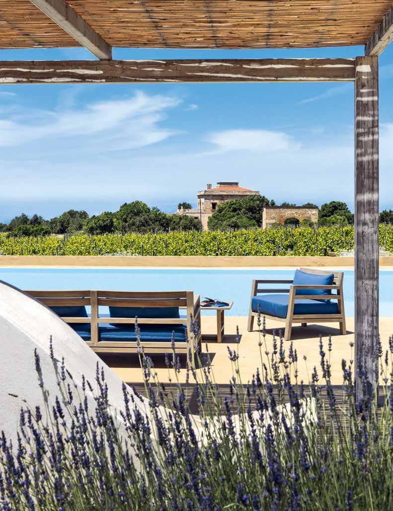it / Universi mediterranei. Una masseria sotto l’azzurro cielo del Salento, un volume di pietra grezza tra le vigne e gli oliveti, semplice e regolare come il ritmo del lavoro nei campi.