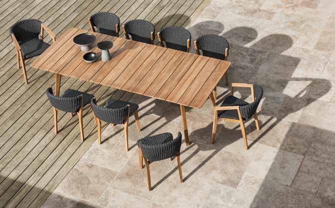 de / Geist und Materie. Die Verknüpfung uralter Traditionen mit schlichten Formen bildet die Grundlage für die neue Lounge- und Dining-Kollektion. Die lebendigen und inspirierenden Farbtöne der mediterranen Natur sind eine ideale Ergänzung der neuen Entwürfe, die sich durch ein ausgewogenes Gleichgewicht, edles Design und hochwertige Verarbeitung auszeichnen. Das Teakholz erinnert an alte Webrahmen, während Marmor und Lavastein mit ihrer materischen Ausstrahlung bestechen.
