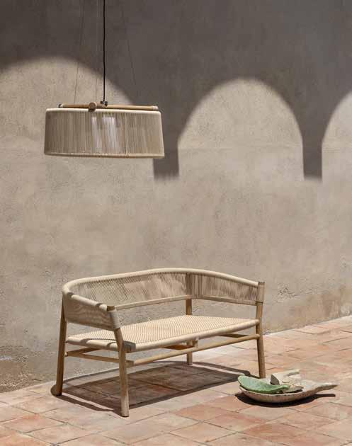 The Kilt lamp is an idea of continuity of form and matter. The rope wraps around the teak and embraces the light, creating relaxing outdoor atmospheres.