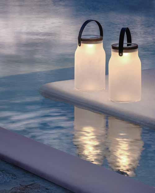 Milk is a lamp with a ‘nomadic’ spirit, made of sandblasted glass, teak and leather, which evokes the traditional design of milk containers. The light diffuses gently, using the clean energy of the sun.