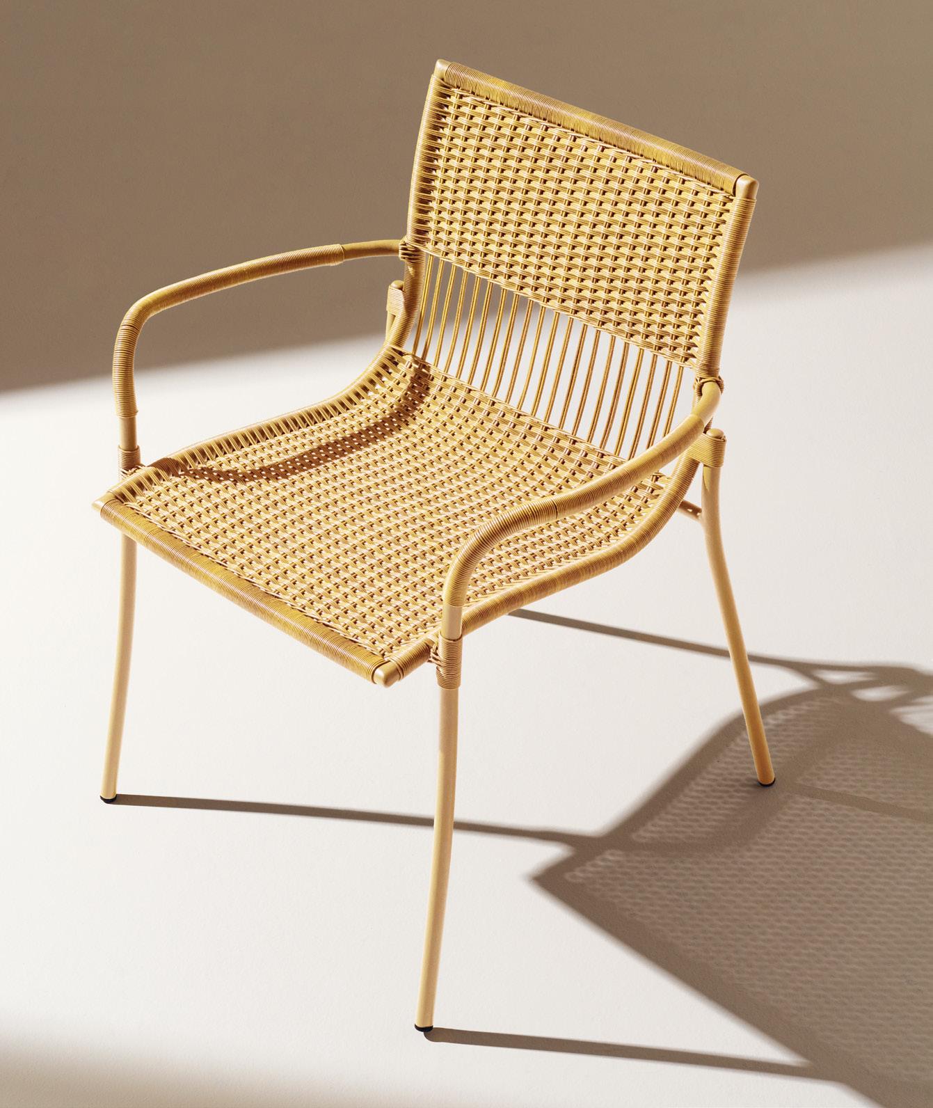 With its vintage spirit and contemporary functionality, the Betsy armchair adds personality to any outdoor setting. Comfortable, light and stackable, it features a weave similar to natural rattan, made with an extremely durable resistant synthetic fibre. A variety of different colours allow for plenty of mixing and matching, in any residential or contract situation.