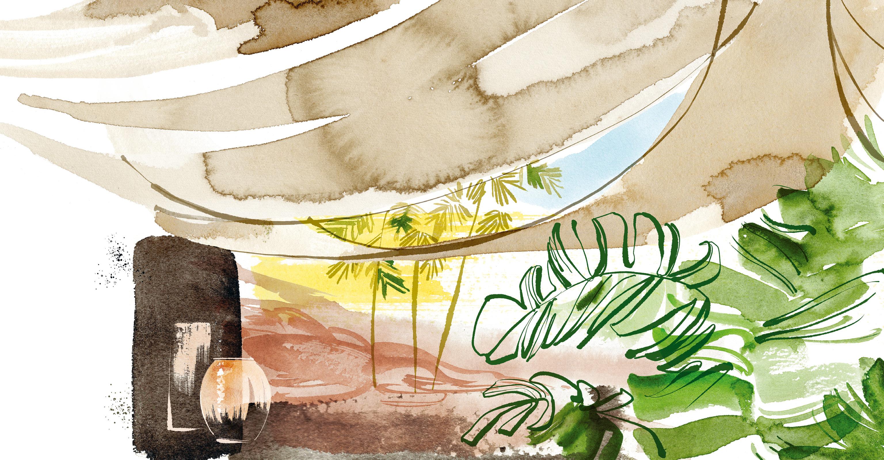 Sheltering from the sun, wind and sea, with a welcoming sense of solid tranquillity and protective energy.