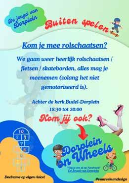 BUDEL-DORPLEIN - In Budel-Dorplein wordt de komende maanden opnieuw volop buiten gespeeld tijdens Dorplein on Wheels. De Jeugd van Dorplein nodigt iedereen uit om samen te komen rolschaatsen, fietsen of skateboarden. Alles zonder motor is welkom, zolang het maar zorgt voor beweging en plezier. Iedereen is welkom om deel te nemen, ook kinderen uit de nabijgelegen dorpen. De activiteit vindt plaats achter de kerk in Budel-Dorplein en loopt telkens van 18.30 uur tot 20.00 uur. De geplande data zijn 24 april, 29 mei, 26 juni, 28 augustus en 25 september. Jongeren krijgen zo de kans om samen actief bezig te zijn in een ongedwongen en gezellige sfeer. Deelname gebeurt wel op eigen risico. Met deze reeks hoopt de organisatie opnieuw heel wat kinderen en jongeren op de been te krijgen voor sportieve en leuke avonden in Dorplein.