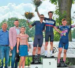 PELT/HOLHEIDE - De kermiskoers op Holheide was weer een gezellige bedoening . Ook de weergoden waren in goede doen. Er waren 2 groepen, namelijk de -40 jarigen en de +40 jarigen. Bij de 'jongeren' won Sebastiaan Deckers voor Rembert Fransen en Tijl Swennen (foto onder). Bij de +40 jarigen mocht plaatselijk renner Patrick Vanhamond op de hoogste trede, met naast hem Dion Koch (2e) en Luc Deckers (3de). Proficiat aan alle deelnemers, alsook aan de organisatie en hun helpers.