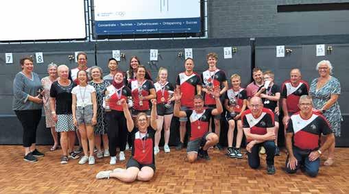 BUDEL - De handboogvereniging de Grensjagers heeft op 11 juni haar jaarlijkse Koningschieten georganiseerd in de Borgh. In totaal deden 17 deelnemers mee en streden om één van de titels en bekers. Tijdens deze mooie maar warme clubwedstrijd hebben ook enkele nieuwe enthousiaste leden meegedaan in de strijd voor de onderscheiding “beste nieuwkomer”. De wedstrijd bestaat uit 5 proefpijlen en 35 tellende pijlen geschoten op 18 meter voor de jeugd en 25 meter voor de volwassenen. Enkel tijdens de 5 proefpijlen mogen de schutters meelopen naar het doelpak, daarna niet meer maar wordt dit gedaan door vrijwilligers. De uitslag moet namelijk tot het einde van de wedstrijd geheim blijven.