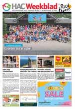 treden op in Maarheeze PAG. 6: Sport en Spel katholieke lagere scholen Hamont-Achel PAG. 7 terugblik op de spokentocht in Hamont HAMONT-ACHEL Zondag hielden de kermislieden voor degoden stonden aan hun kant want ondanks de voorspelde herfstbuitjes bleef het grotenZondag rond twee uur maakten de eerste kraampjes zich klaar om de klanten te ontvangen. Pluchen beertjes werden klaargezet, plasen de eerste nieuwsgierigen kwamen al eens een kijkje nemen. Langzaam maar zeker vulde het centrum zich met kinderen en ouvan een leuke ritje op de paardenmolen, leuke prijzen en knuffelberen, konden de ouders zich kermisfriet en natuurlijk een lekkere, frisse pint. Avonds moesten de kinderen plaatsmaken voor de jeugd van Hamont en Achel. Zij de spannendere attracties zoals de botsauto’s, Big Swing en Crazy Dance, drie vaste waarden op de Hamontse kermis. Maandag was Maar diegenen die wel de weg profiteren van extra lange ritjes op de paardenmolens. (lees verder op pagina 4) PAG. 11: Geslaagd accordeon- PAG. 13: 55 jaar carnaval in ‘t Werd tijd! Kermis hield weer halt in Hamont HAMONT ‘t Werd tijd. Dat er voor onze regio. Weer een weekblad erbij zult misschien denin dit gebied, ons kleine streekgebied, dat Hamont en Achel, zowel als de hele gemeente elkaar brengen. Juist in deze tijd. Hoe gaan we dat doen? Wel, we hebben ervoor gekozen om behalve meer streekgebongebied, in allerlei hoedanigheden en met allerlei vaardigheden te belichten en/of in het zonnetje te met foto’s een bijzondere inrichting of iets anders speciaals zien. En wanneer u denkt: nou, bij mij binnen het ook heel bijzonder, kunt u zich ook daarvoor opgeven. Deze vierwekelijkse rubriek gaat heten: ‘Hoe is het binnen een persoon aan het woord. Hij of zij kan vertellen over een bijzondere hobby of talent. Ook hierWe laten tuinen zien, we gaan winkels in en wanneer men er geen bezwaar tegen heeft, vertellen we over het koopgedrag van een juist in dié winkel?’, ‘Waarom juist Winkel-in gaat heten, wordt goed uitgelicht en met foto’s van zowelschreven. Daarmee willen wij ook onze klanten, de winkeliers, in het zonnetje zetten en behagen. (lees verder op pagina 4) Elke Vrijdag in uw brievenbus! Op de foto staat het team van HAC Weekblad. V.l.n.r. Guus van Winkel, teksten/columns, François van Gennip, zaakvoerder, Saskia van Gennip, administratie/balie, Jana Poukens, redactrice Hamont en Achel, Wesley Hegge, redakteur Cranendonck en Marcel Kwanten, advertentieverkoop. ✆